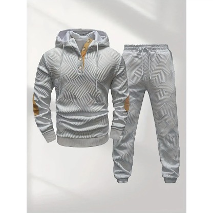 Men's Casual Fashion Suit Knitted Jacquard Sweatshirt And Pants Two-Piece Set